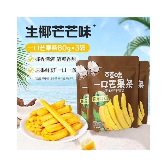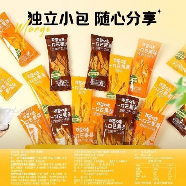 💖百草味風味芒果條獨立包裝網紅生椰味香橙味芒果乾果脯休閒零食