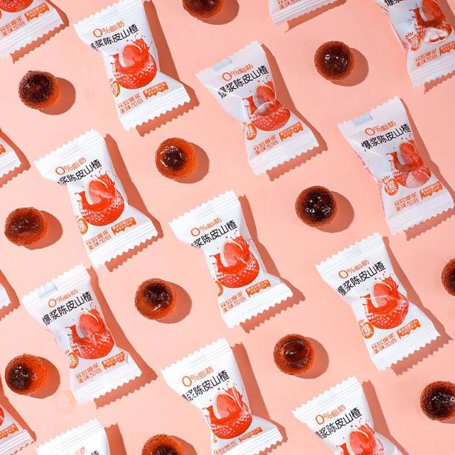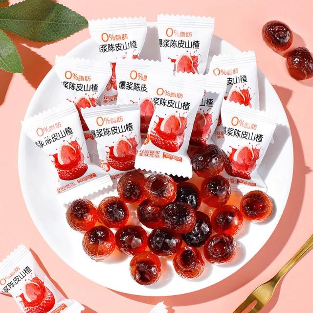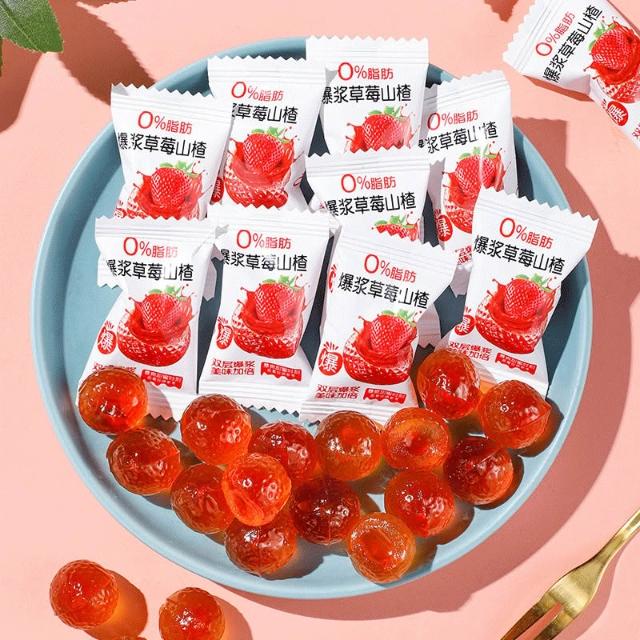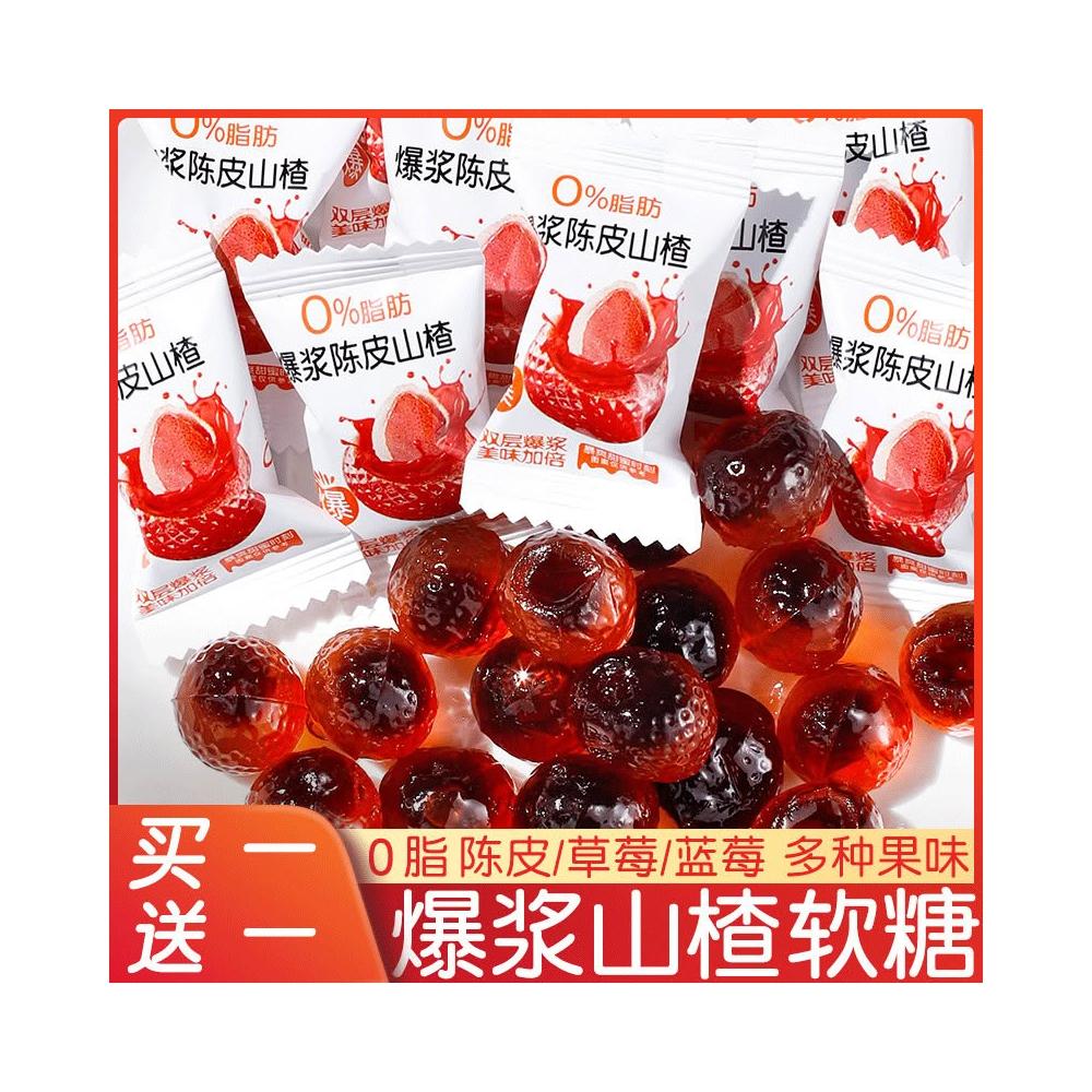 💖 網紅爆漿山楂陳皮爆汁草莓水果味夾心軟糖藍莓小零食糖果散裝
