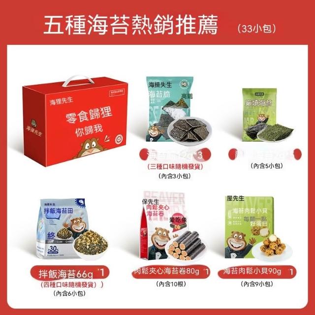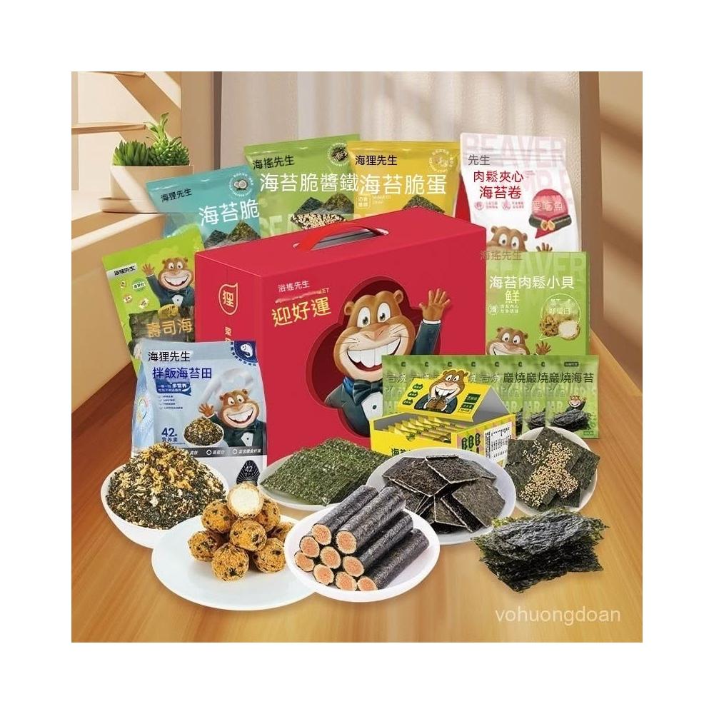 熱賣中 海狸先生海苔零食大禮包春節禮盒中秋送禮送兒童3種海苔共20小包
