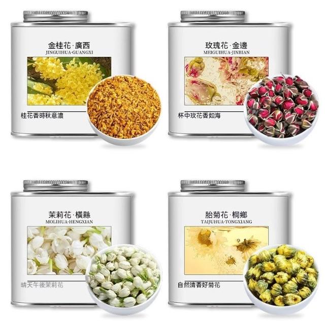 熱賣中嚴選美食| 景福山 四大花茶組閤 桂花玫瑰花桐鄉胎菊花橫縣茉莉花茶葉禮盒裝