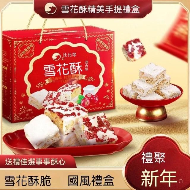 熱賣中 比比讚雪花酥禮盒880g蔓越莓奶香酥心糖果禮盒送禮特産年貨團購