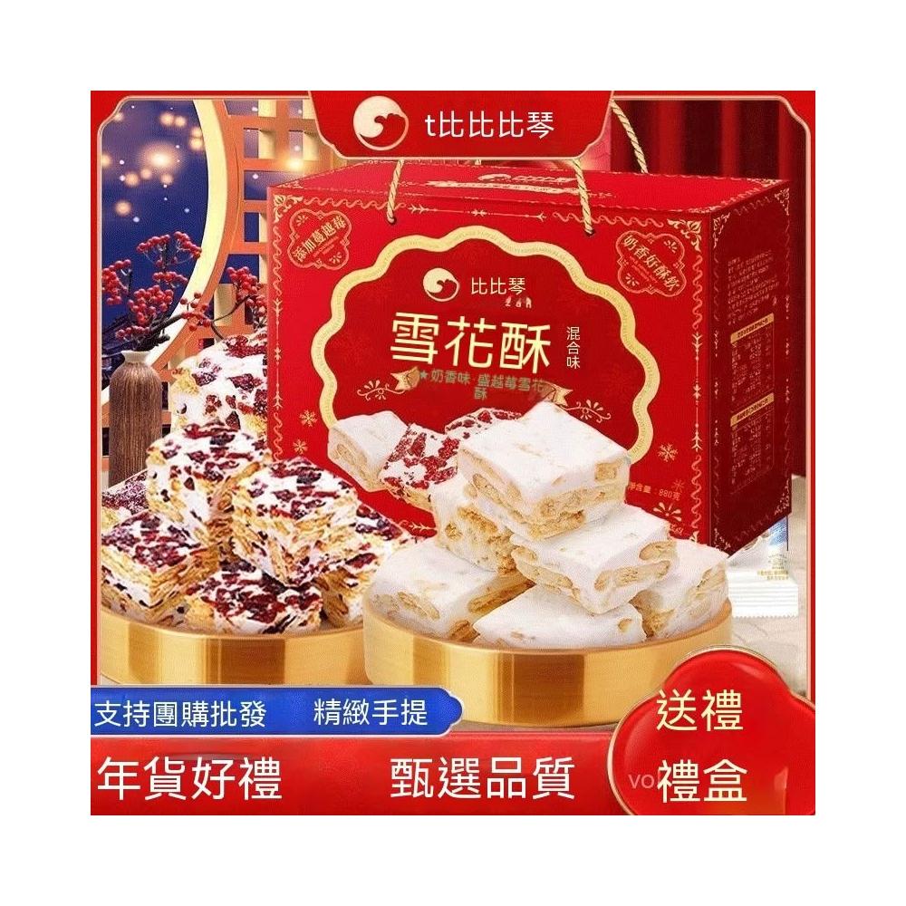 熱賣中 比比讚雪花酥禮盒880g蔓越莓奶香酥心糖果禮盒送禮特産年貨團購