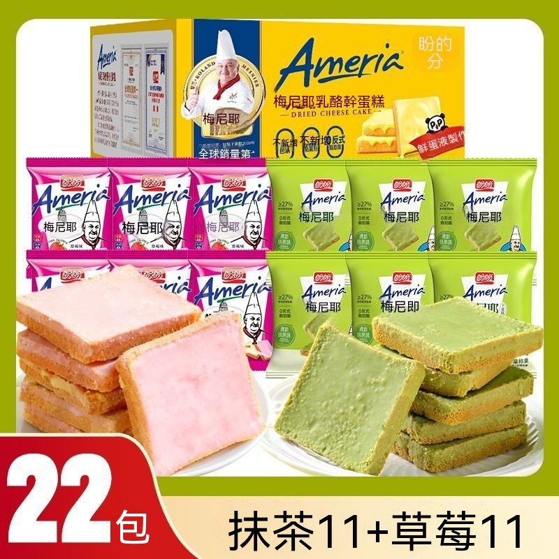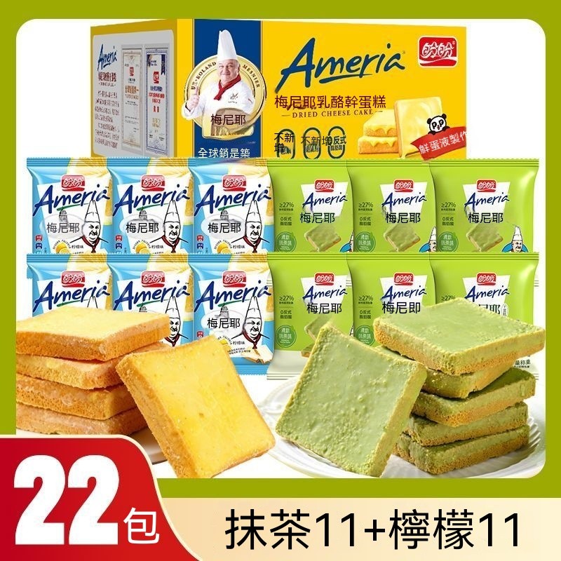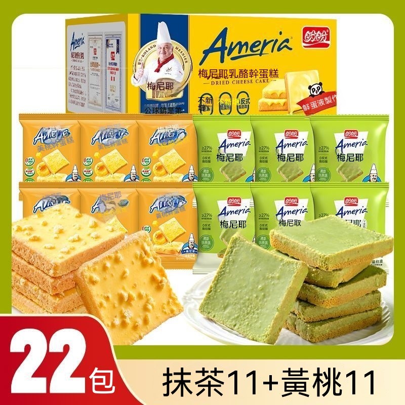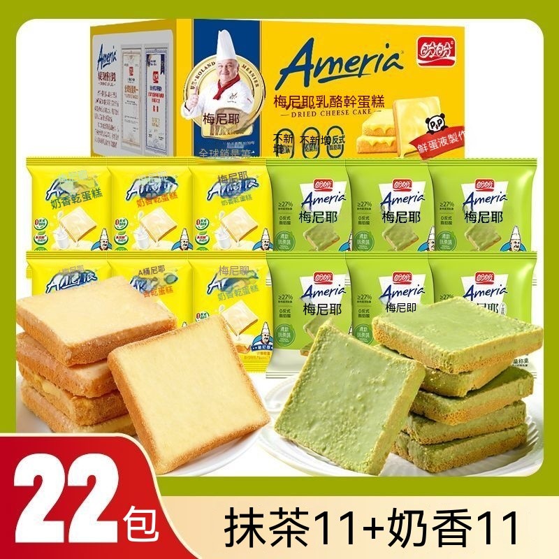 熱賣中 盼盼梅尼耶餅幹糕混閤口味抹茶味點心整箱早餐麵包幹休閒零食品
