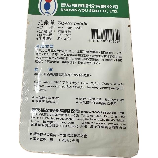 瘋狂園藝農友 孔雀草(F-595) 花卉 種子 小包裝 約60粒/包