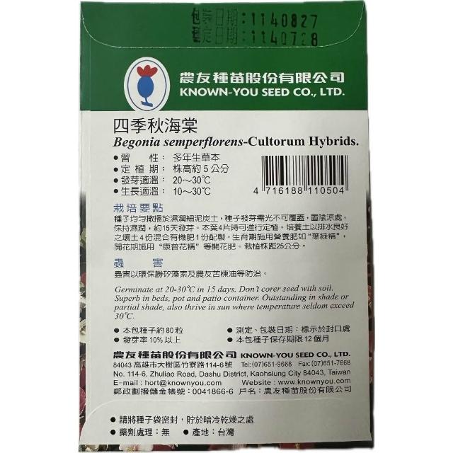 (F-050)四季秋海棠 花卉 種子 小包裝 約80粒/包