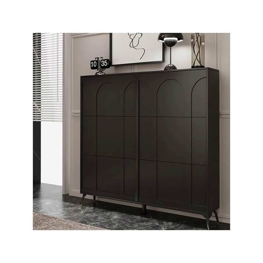 法式超窄翻鬥鞋櫃家用門口入戶玄關櫃樓梯戶外輕奢高級感黑色窄款