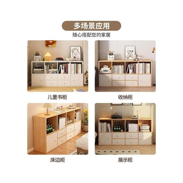 簡易書架落地置物架書櫃收納櫃家用客廳矮櫃靠牆櫃子儲物櫃格子櫃