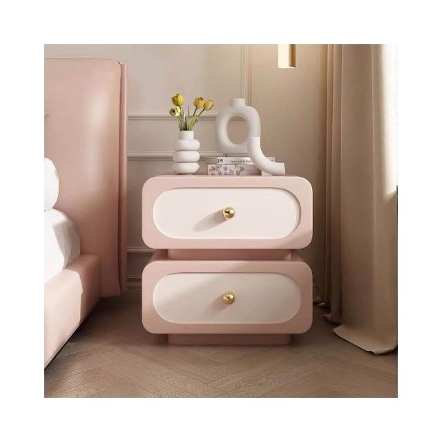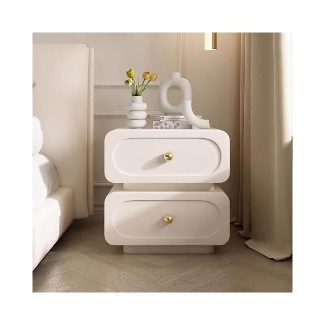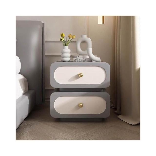 意式極簡輕奢實木床頭櫃簡約現代法式奶油風儲物櫃黑色皮質床邊櫃