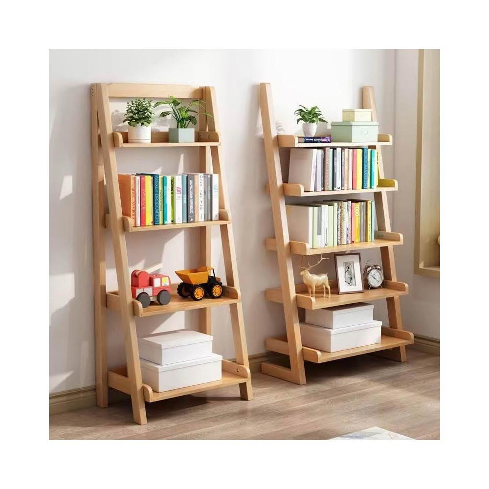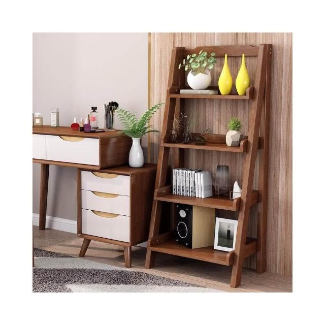 橡膠實木梯形多層置物書架階梯式北歐臥室客廳陽台落地白色收納架 展示架 書架 書柜 花架 裝飾架 臥室床邊置物架床邊柜