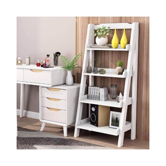 橡膠實木梯形多層置物書架階梯式北歐臥室客廳陽台落地白色收納架 展示架 書架 書柜 花架 裝飾架 臥室床邊置物架床邊柜