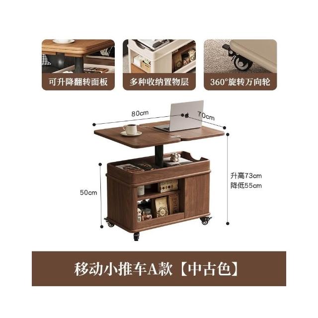 沙發邊幾可移動茶几小戶型客廳邊櫃多功能茶桌升降折疊實木茶几