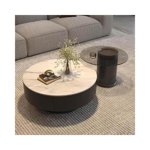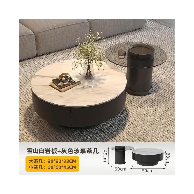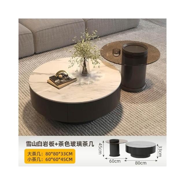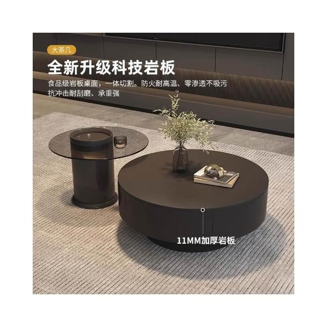 現代簡約輕奢極簡岩板茶几小戶型客廳家用茶桌大小圓茶几組合桌子