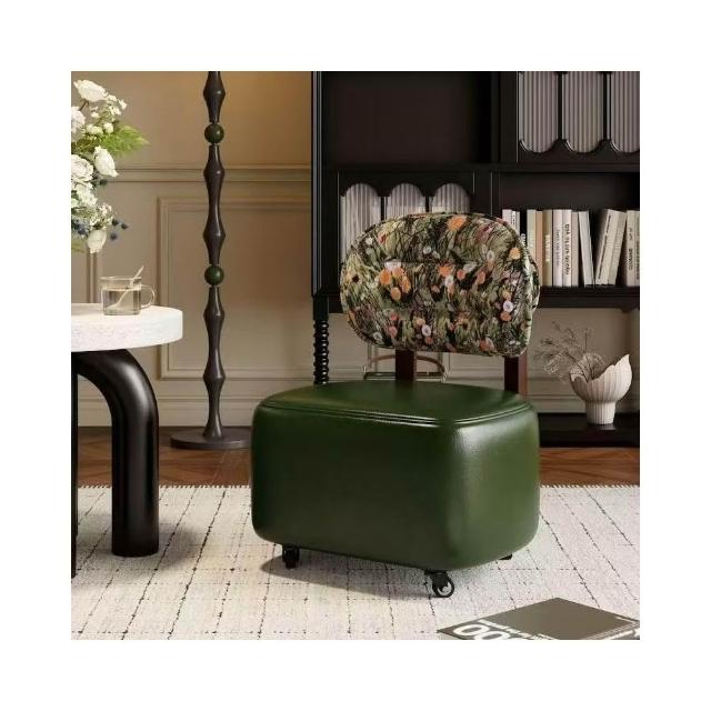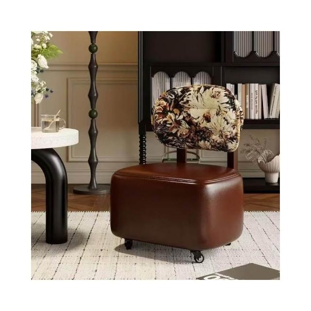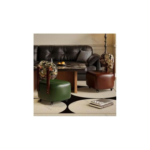 春光滑輪凳 印花實木萬向輪小沙發凳 軟包換鞋凳 移動家用溜溜輪滑凳