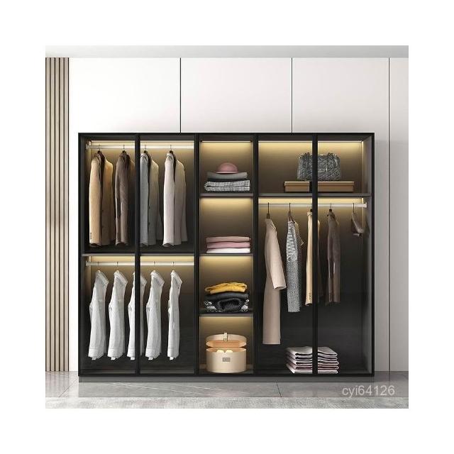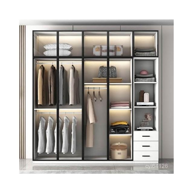 工廠直發 輕奢玻璃衣櫃家用臥室簡約現代小戶型儲物櫃組閤大衣櫃出租房衣櫥