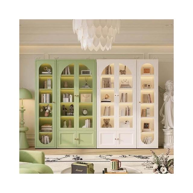 新款長虹玻璃門書櫃簡約現代置物櫃書架法式風客廳家用儲物展示櫃