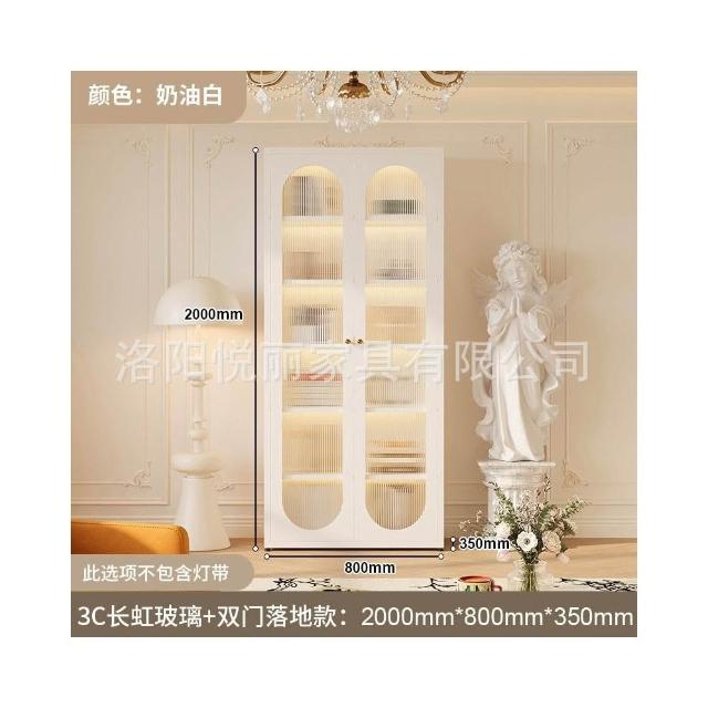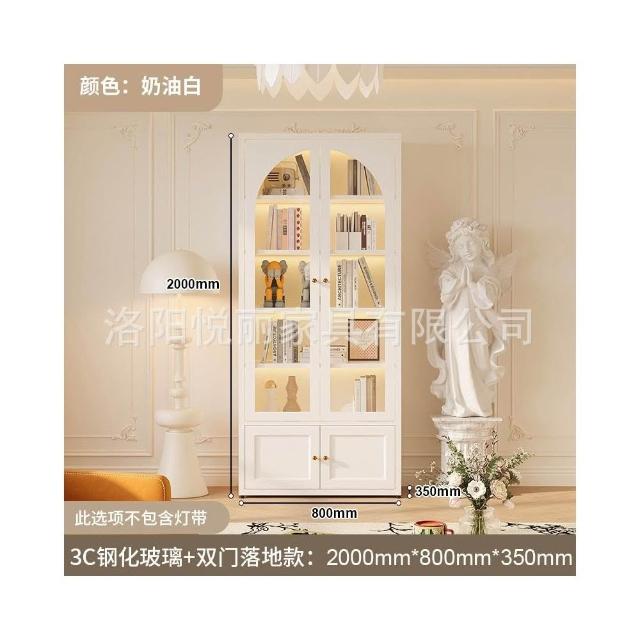 新款長虹玻璃門書櫃簡約現代置物櫃書架法式風客廳家用儲物展示櫃