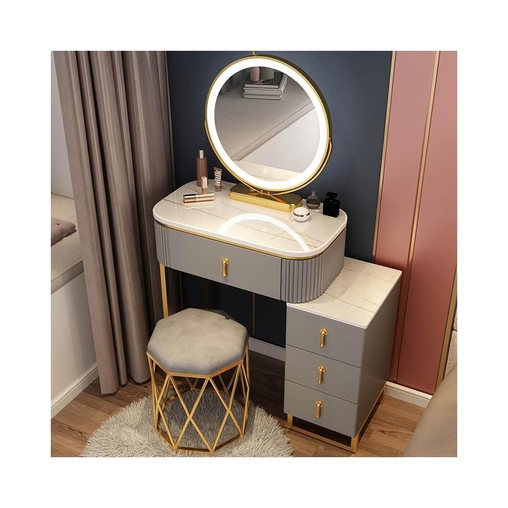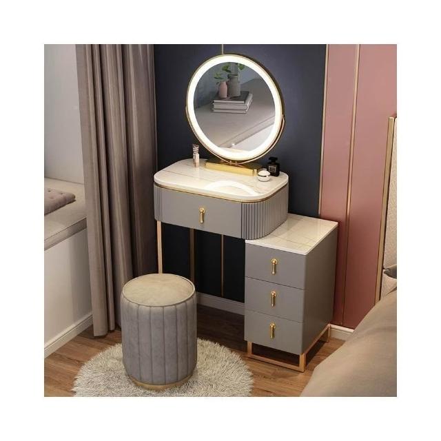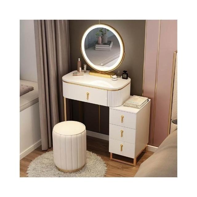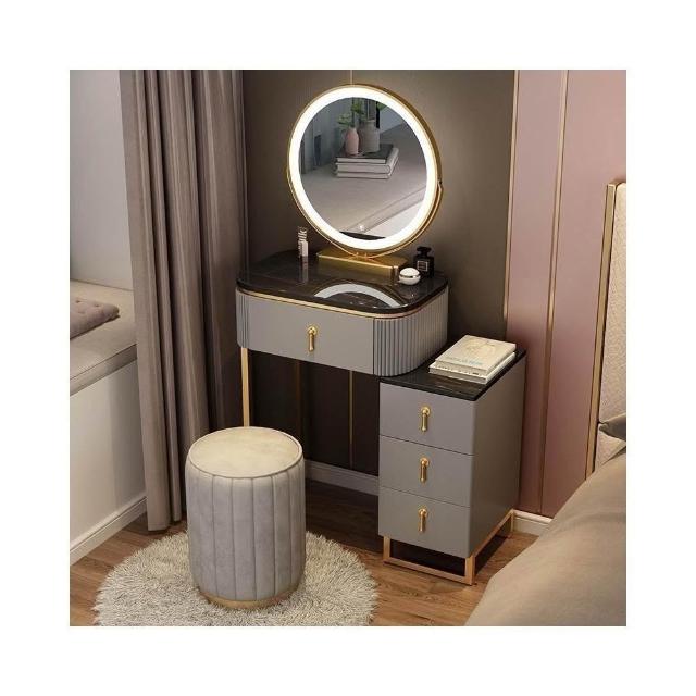 免安裝 梳妝台 梳妝桌 化妝桌 梳妝櫃 簡易化妝台 輕奢岩板梳妝台床頭收納櫃一體 卧室現代簡約化妝桌小戶型多功能