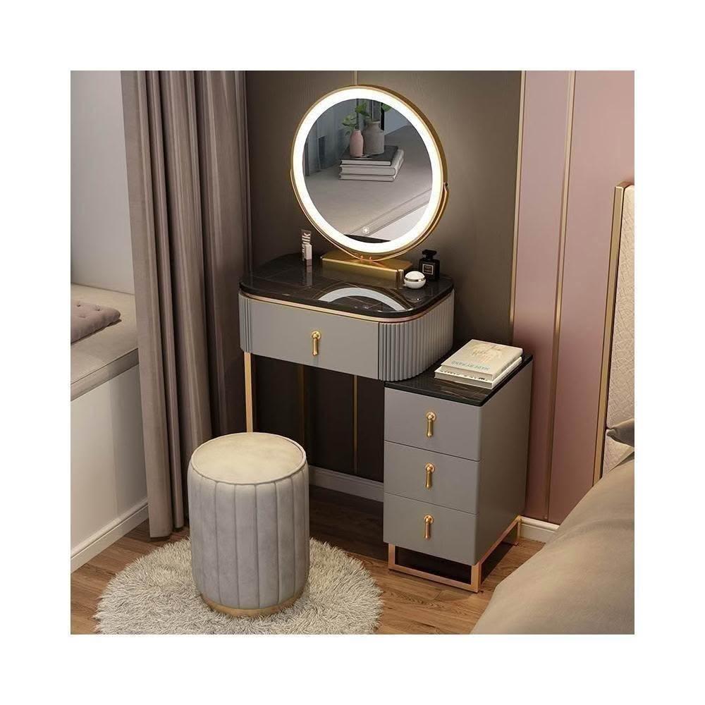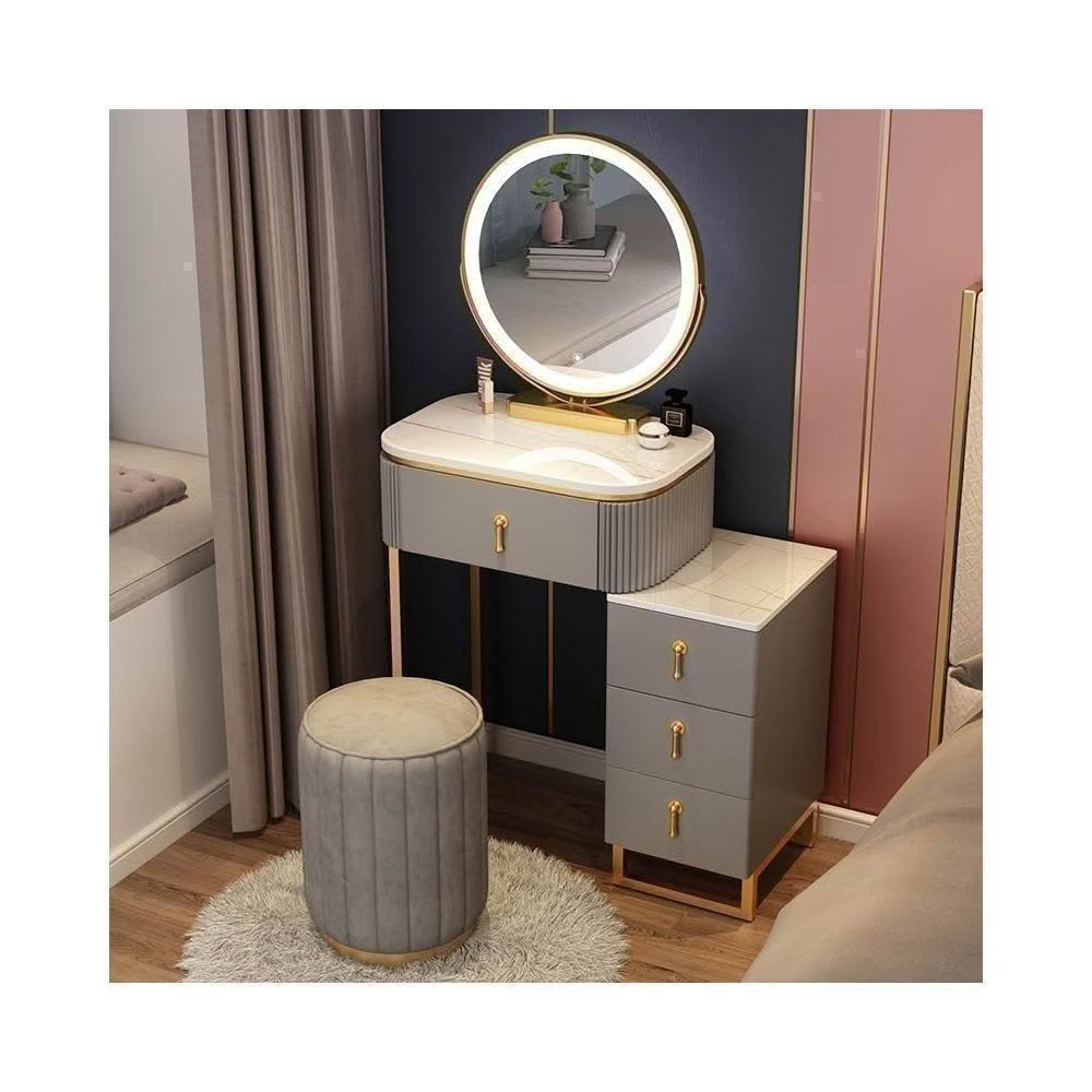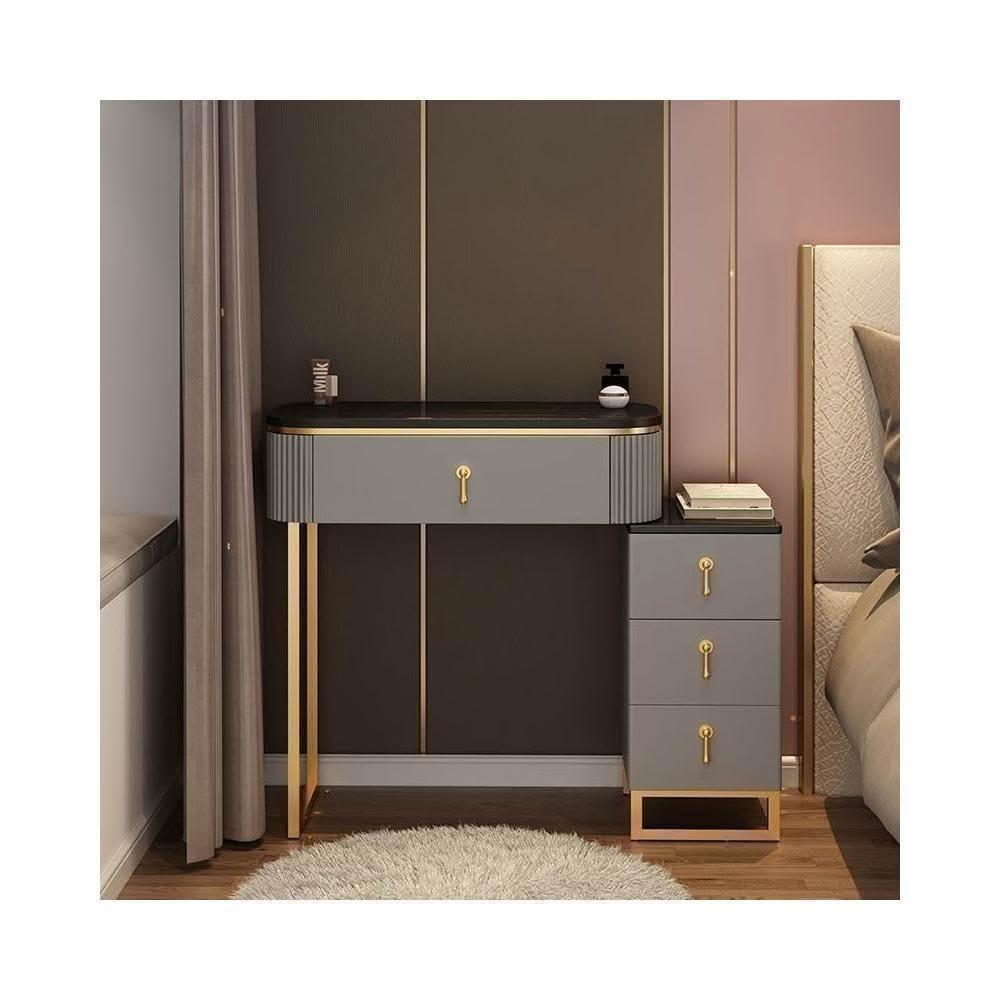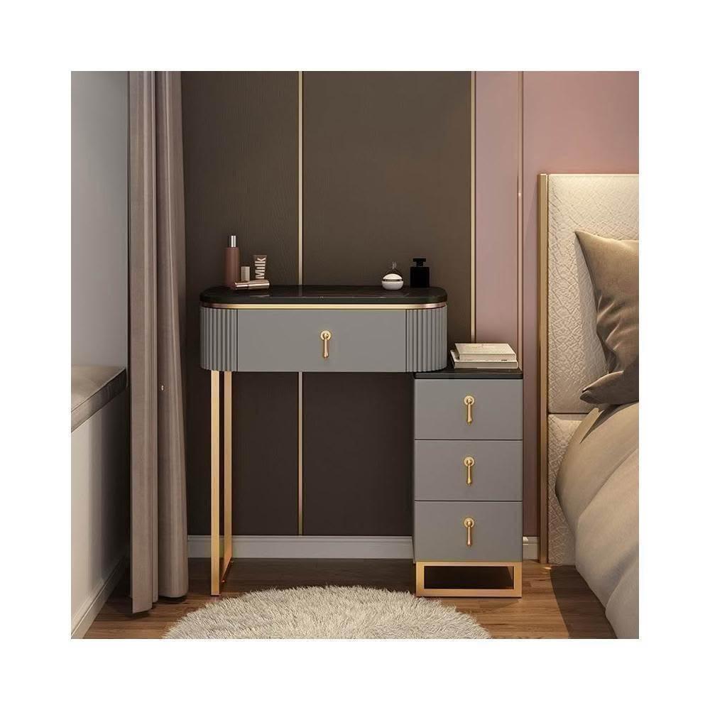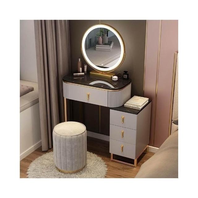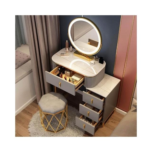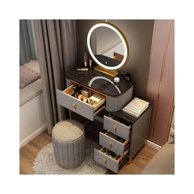 梳妝台 梳妝桌 化妝桌 梳妝櫃 簡易化妝台 輕奢岩板梳妝台床頭收納櫃一體 卧室現代簡約化妝桌小戶型多功能