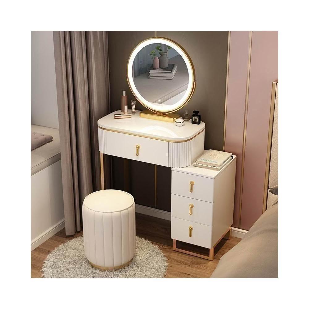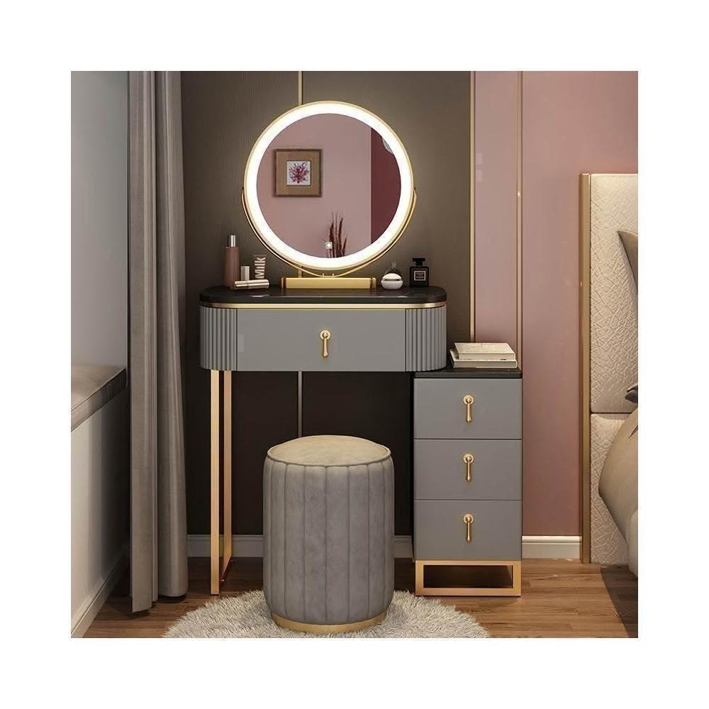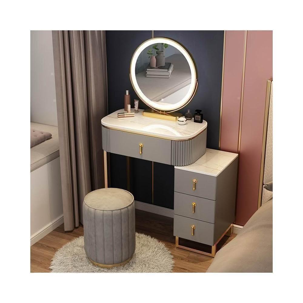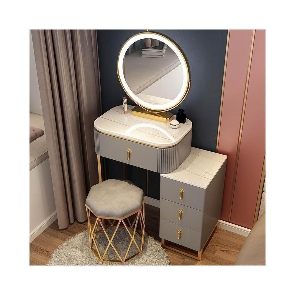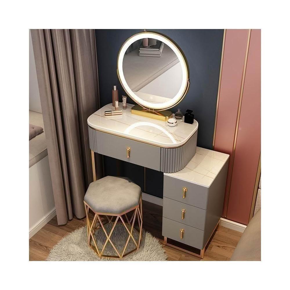 梳妝台 梳妝桌 化妝桌 梳妝櫃 簡易化妝台 輕奢岩板梳妝台床頭收納櫃一體 卧室現代簡約化妝桌小戶型多功能