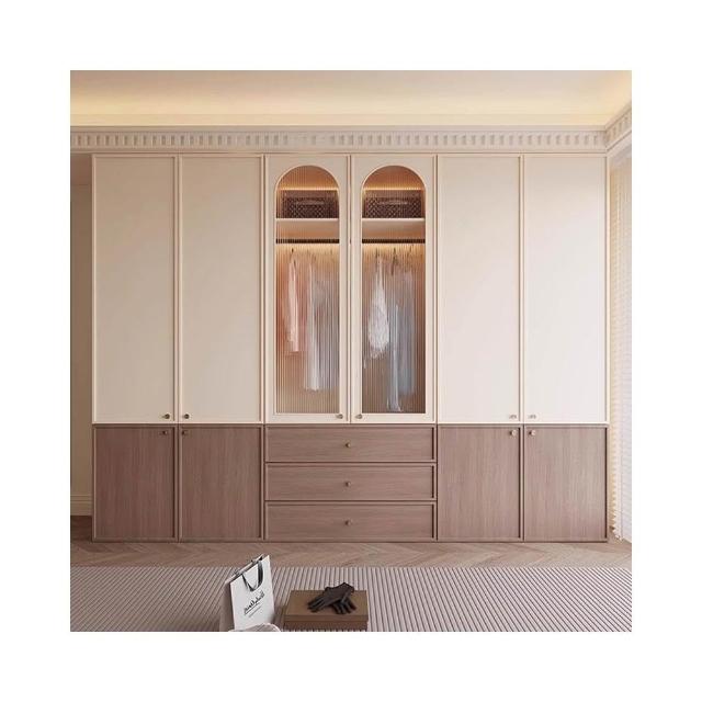 法式復古奶油風全屋衣帽間一門到頂家用中古衣櫥簡約衣櫃組合