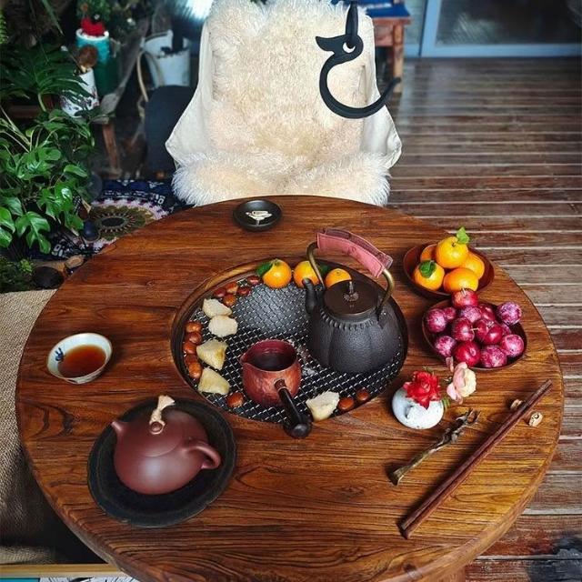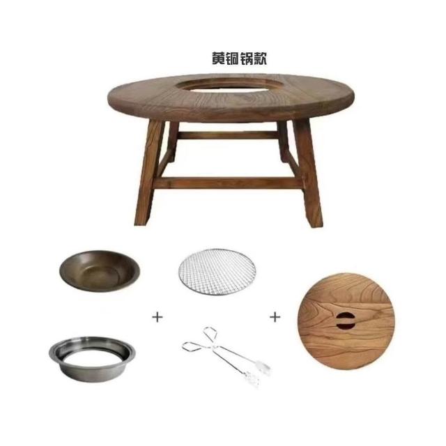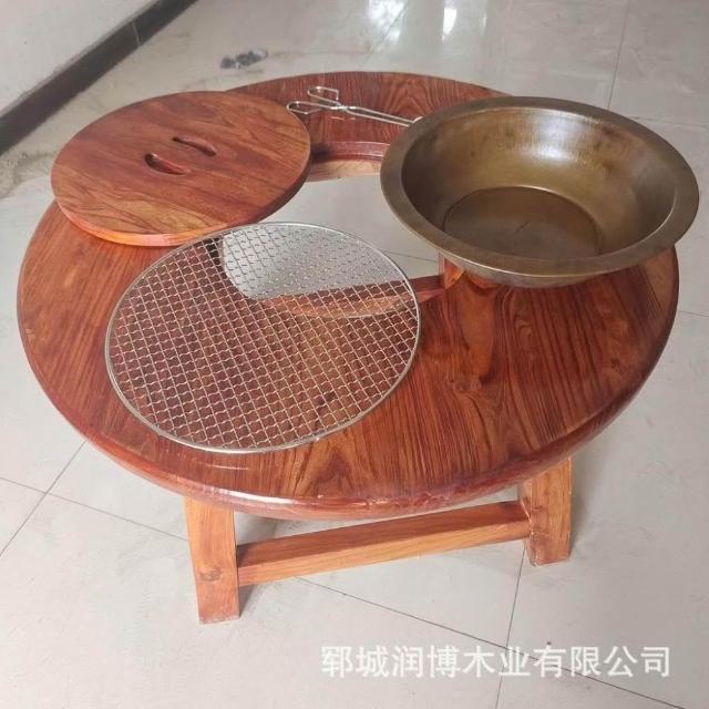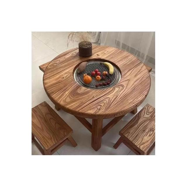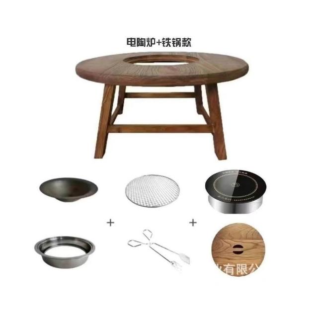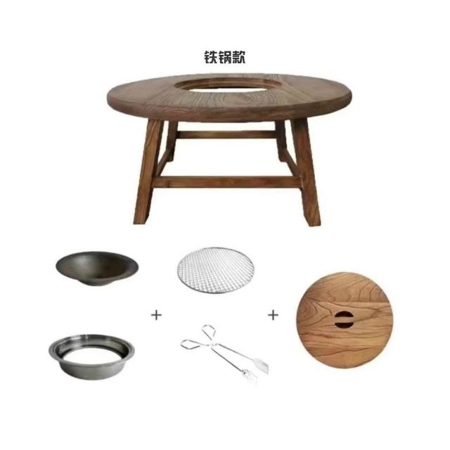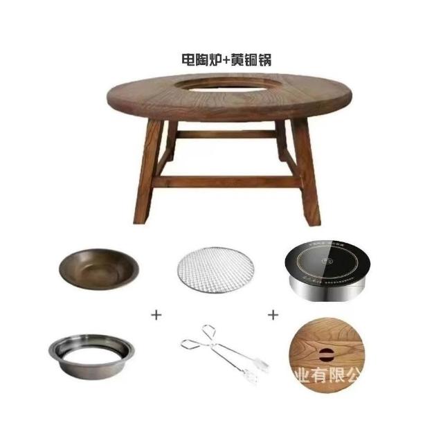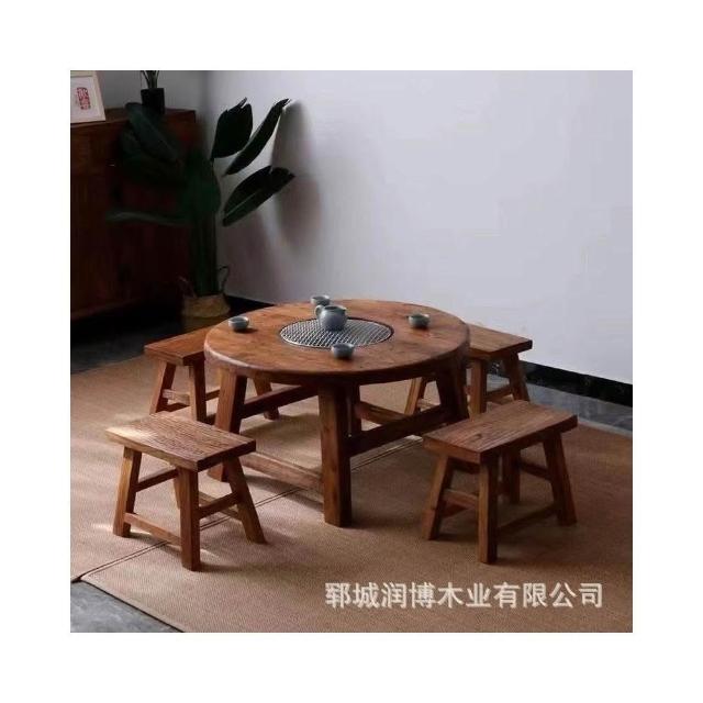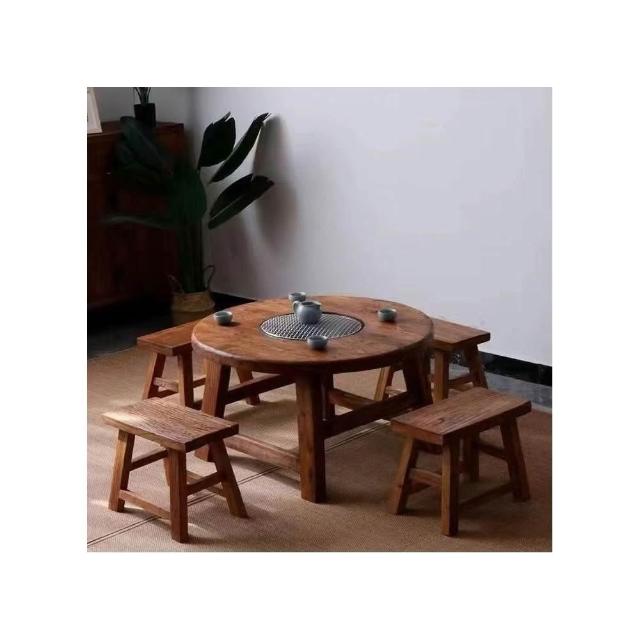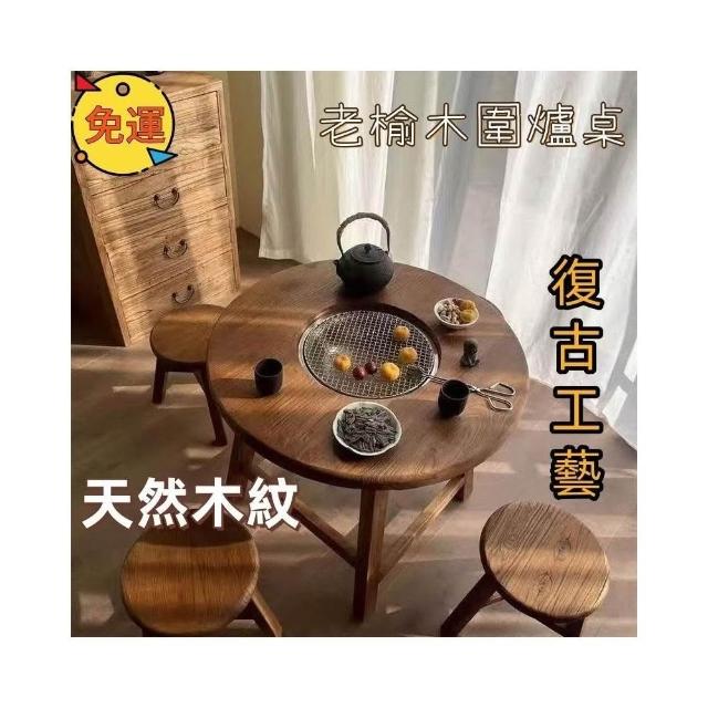 免運 可開統編 茶桌 餐桌 實木圓桌 洽談桌 桌椅組合 老榆木圍爐桌老榆木煮茶桌實木茶桌組閤圓形煮茶火鍋桌陽臺