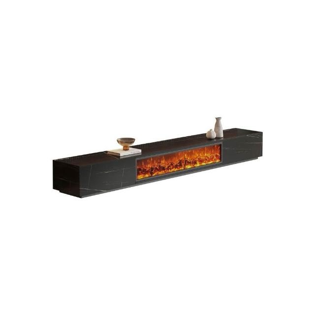意式極簡LED仿真火焰電視櫃電子壁爐地櫃全岩板面實木櫃體電視櫃