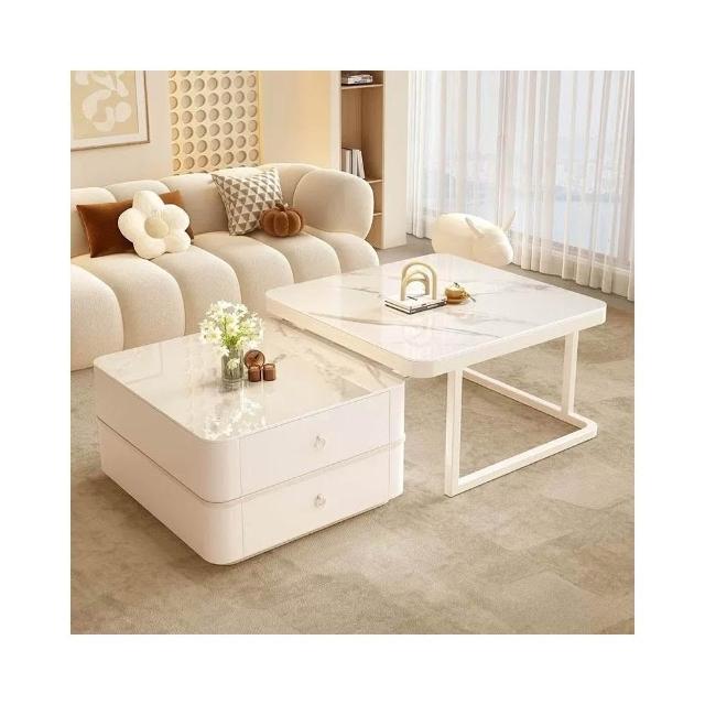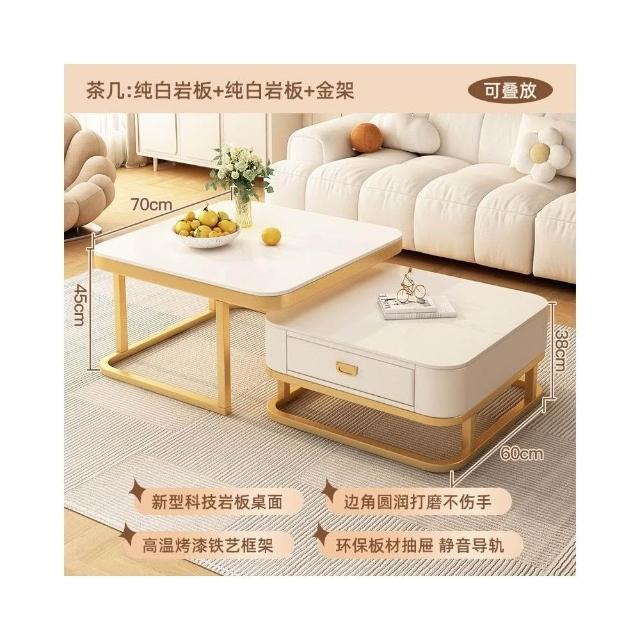 2024新款奶油風白岩板茶几組合輕奢小戶型客廳家用簡約現代網紅桌