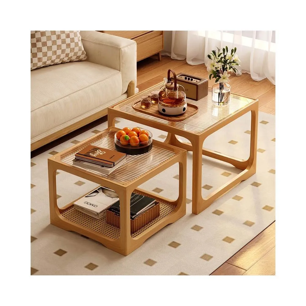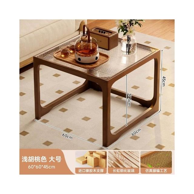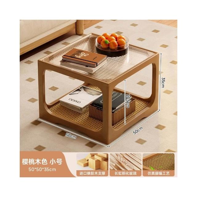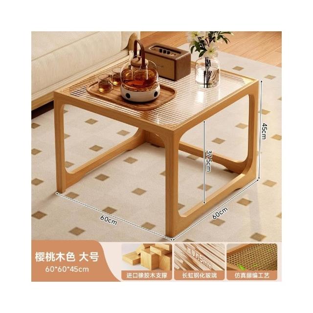 實木玻璃茶几客廳家用小戶型茶桌2025新款方形組合邊幾藤編小茶臺
