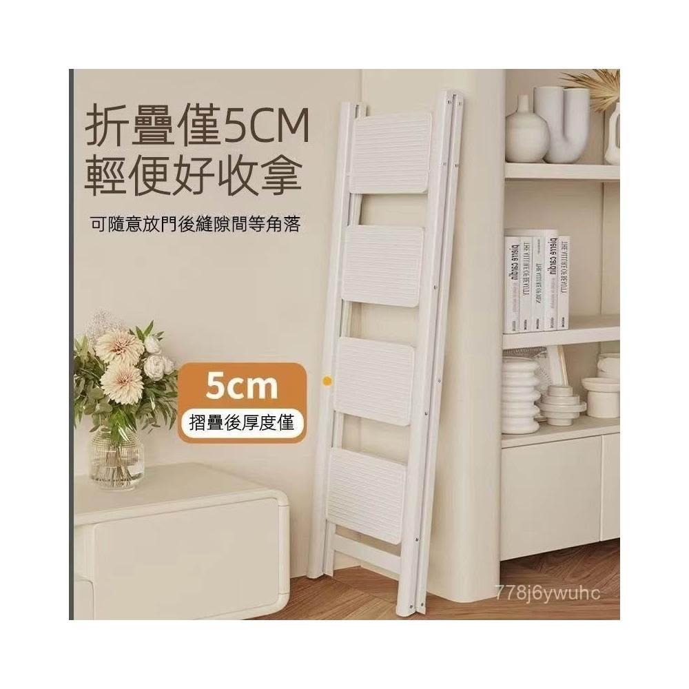 免安裝 奶油白梯子 家用折疊伸縮加厚人字梯 室內多功能樓梯 小梯凳 輕便加寬