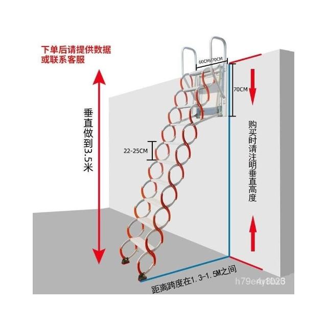 免運 伸縮樓梯閣樓傢用壁掛式折疊隱形陞降伸縮梯室外掛墻式碳鋼梯子-工具梯-伸縮梯-收納梯-方便