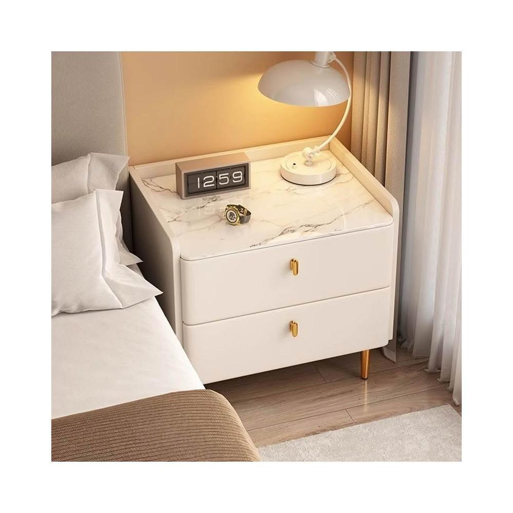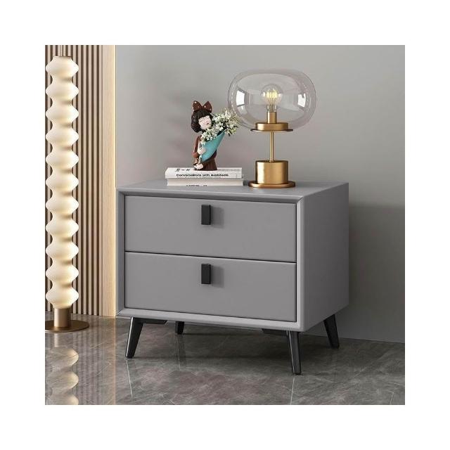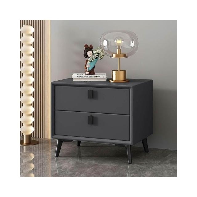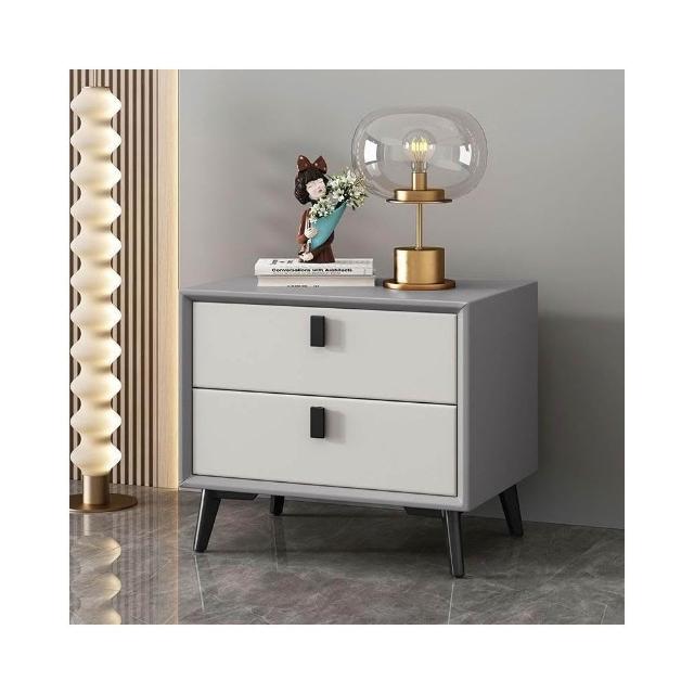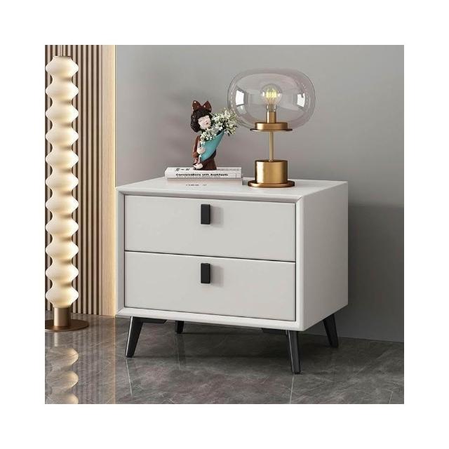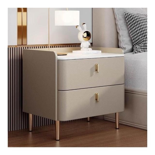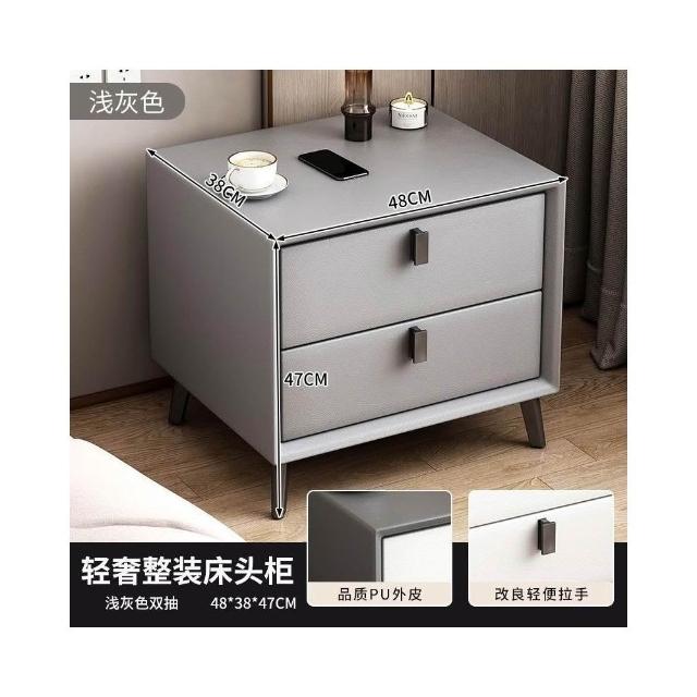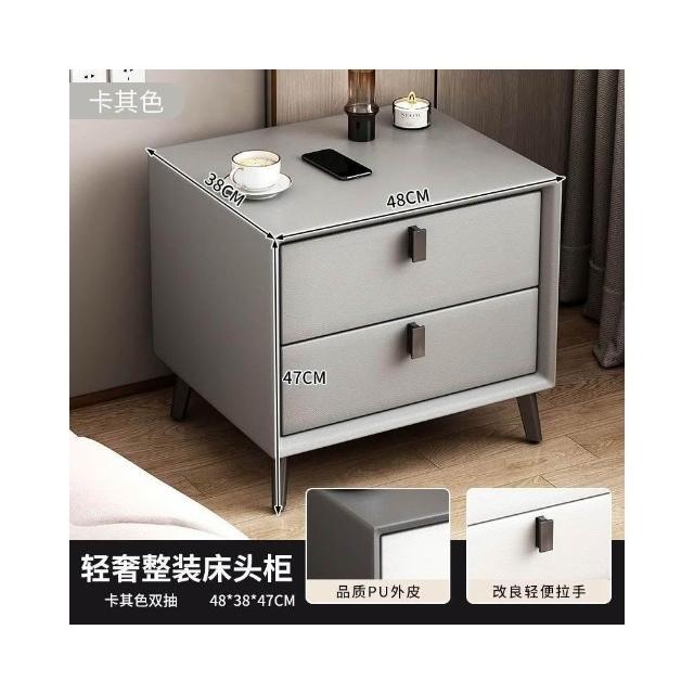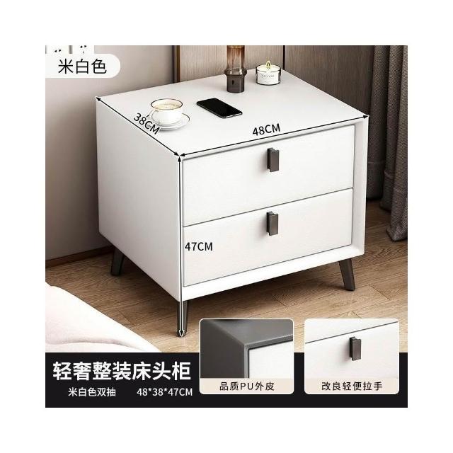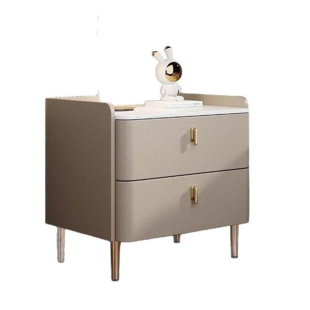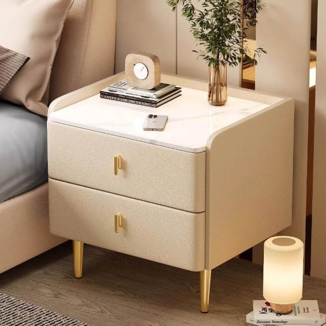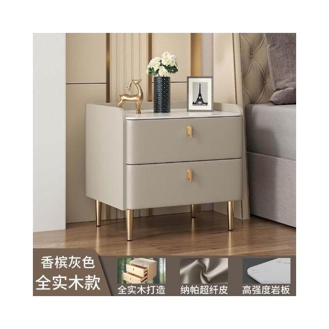 實木床頭櫃輕奢感臥室簡約現代床邊家用岩板小型床頭收納櫃子