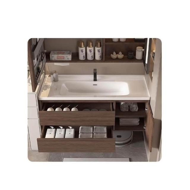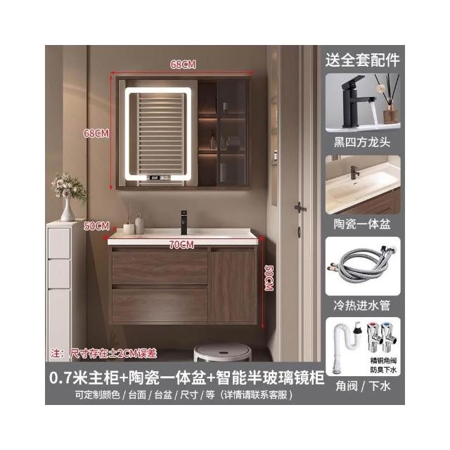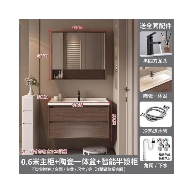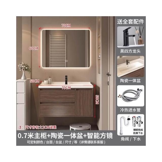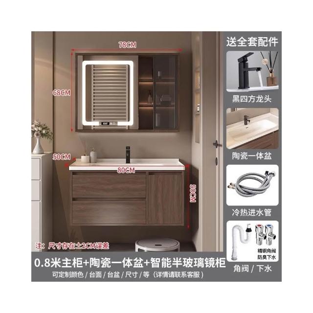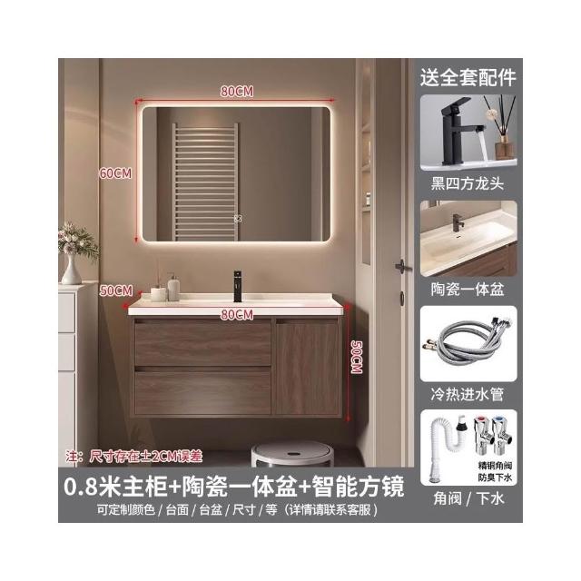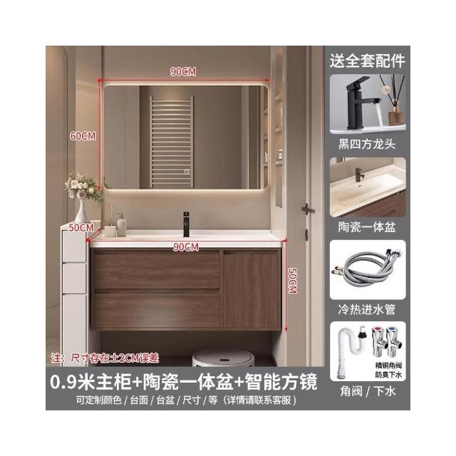 (包安裝)中古风胡桃木陶瓷一体盆浴室柜组合卫生间洗漱台洗手洗脸盆柜