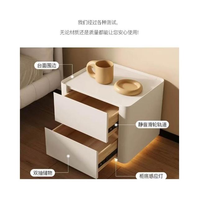 意式輕奢床頭櫃簡約現代高級智能床邊櫃臥室免安裝實木收納儲物櫃