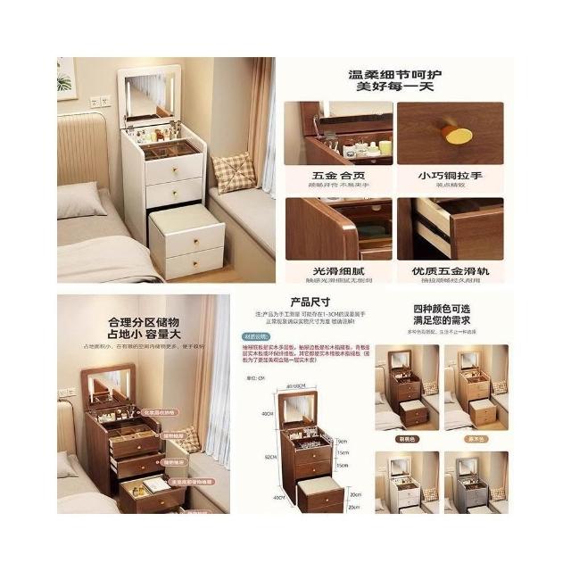 梳妆台新款翻盖梳妆台收纳柜一体式化妆台实木斗柜卧室迷你化妆桌