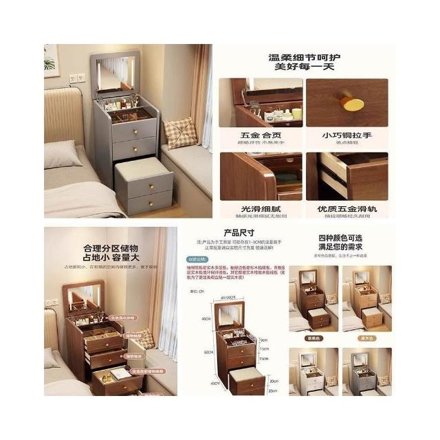 梳妆台新款翻盖梳妆台收纳柜一体式化妆台实木斗柜卧室迷你化妆桌