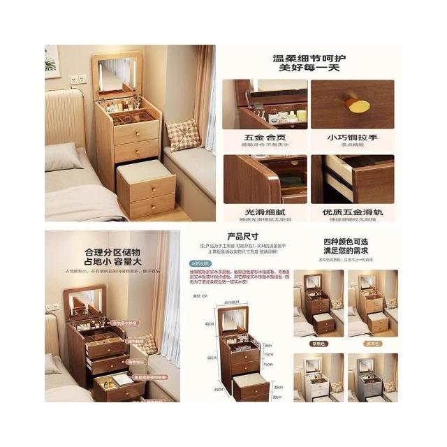 梳妆台新款翻盖梳妆台收纳柜一体式化妆台实木斗柜卧室迷你化妆桌