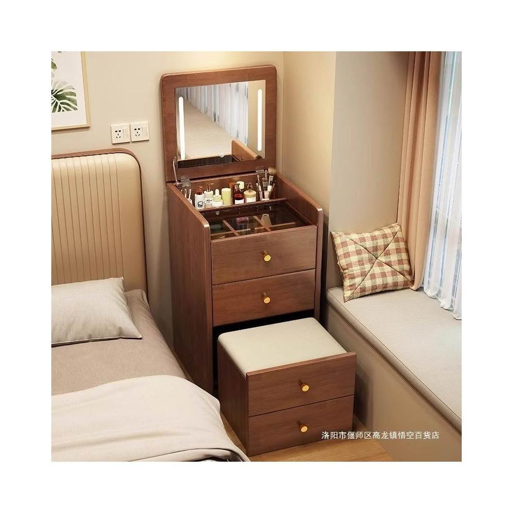 梳妆台新款翻盖梳妆台收纳柜一体式化妆台实木斗柜卧室迷你化妆桌