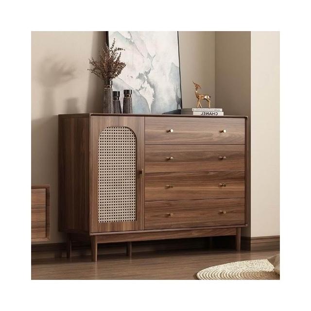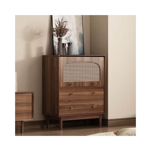 实木斗柜客厅靠墙储物柜卧室收纳柜复古藤编床尾柜胡桃木色餐边柜