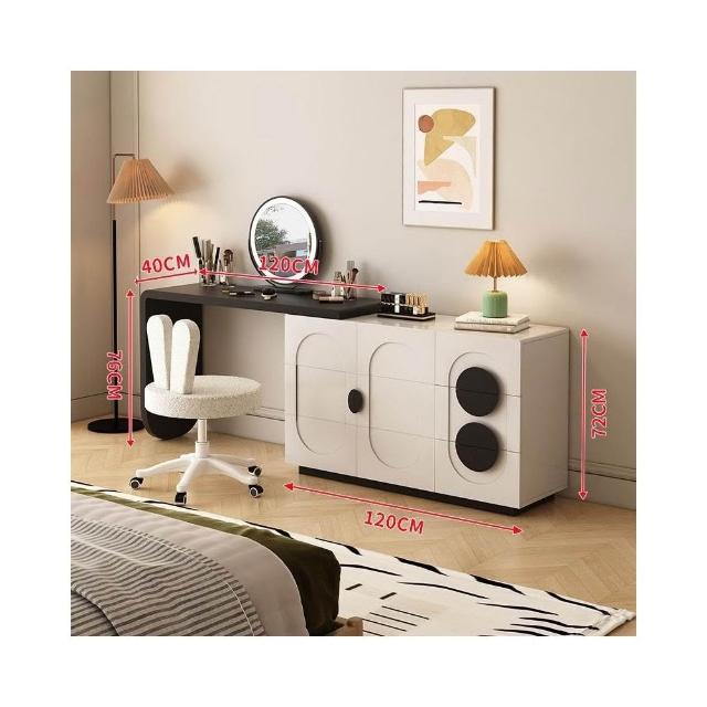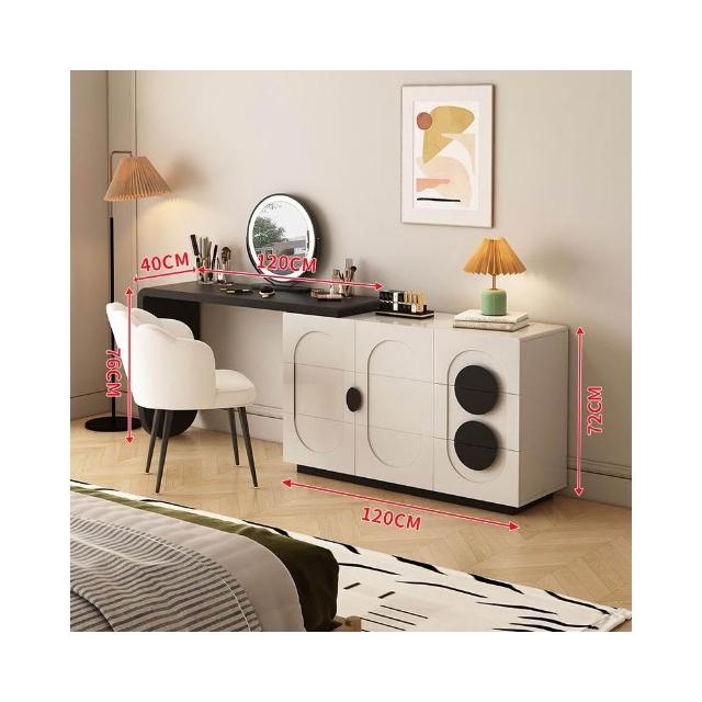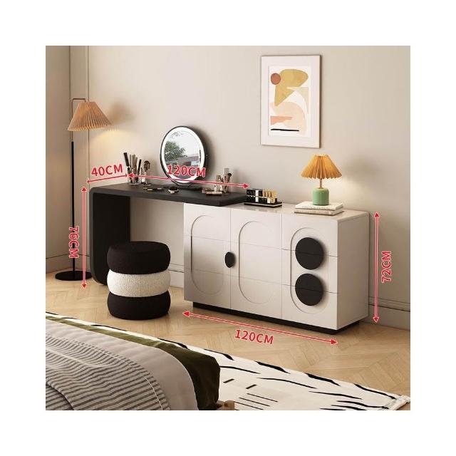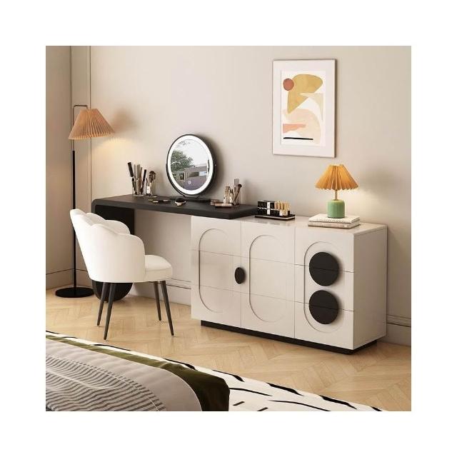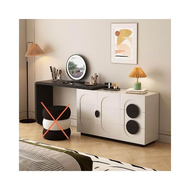 法式复古实木梳妆台斗柜一体现代简约主卧高级感黑白调书桌化妆柜