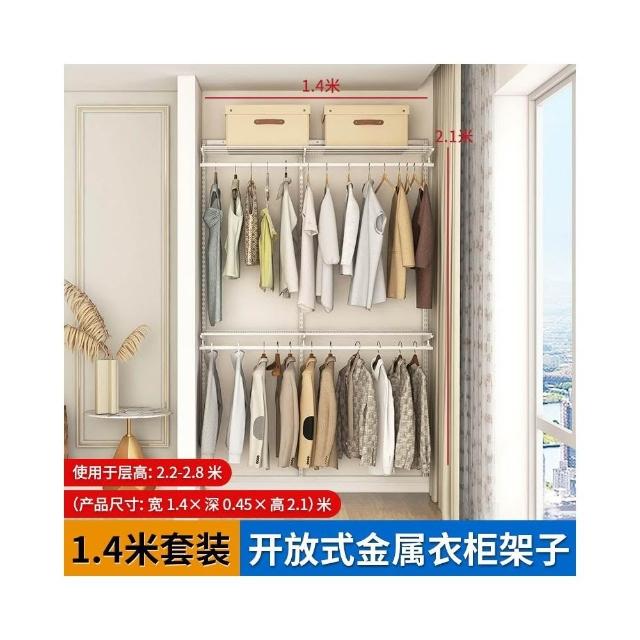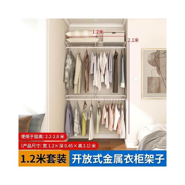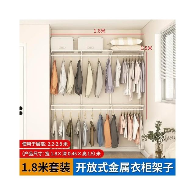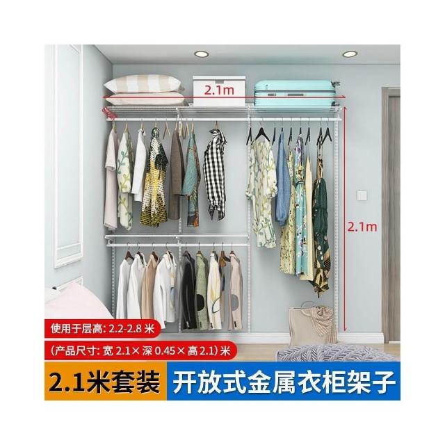 新型現代開放式金屬衣帽間五金臥室步入式掛牆簡易衣櫃鋼架衣櫥架