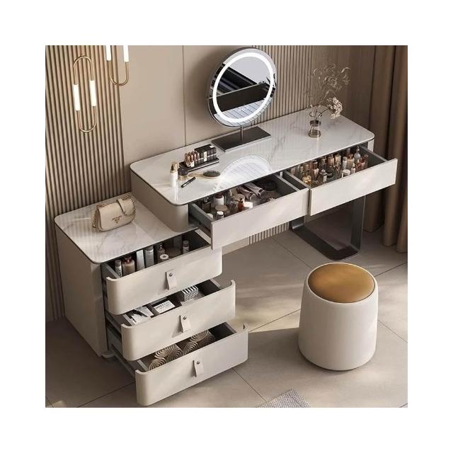 意式輕奢岩板梳粧檯小戶型臥室現代簡約化妝臺高端極簡風化妝桌