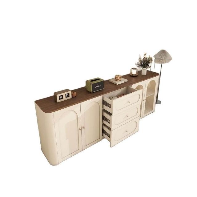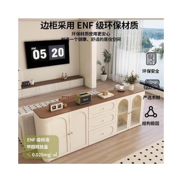 實木法式餐邊櫃鬥櫃一體靠牆儲物櫃小戶型客廳圓弧角置物櫃茶水櫃