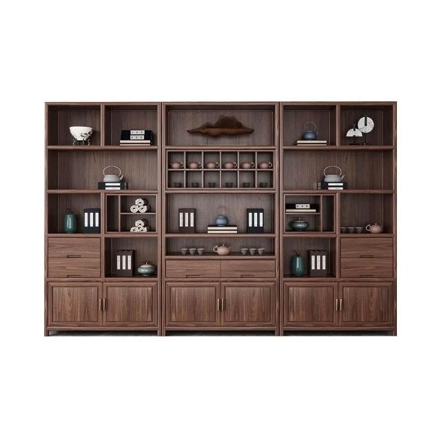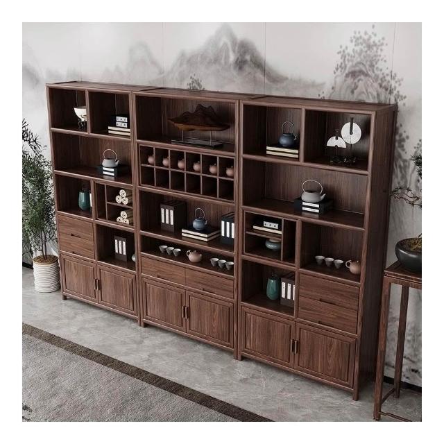 新中式博古架實木書櫃黑胡桃木展示櫃老榆木置物架收納櫃茶室傢俱