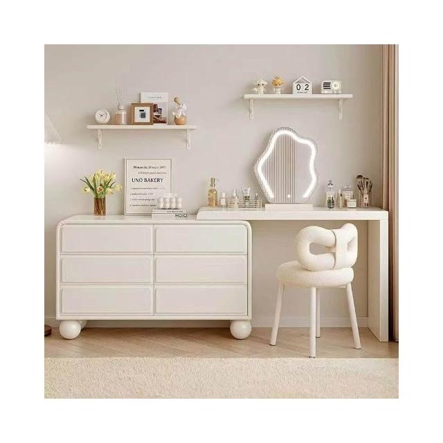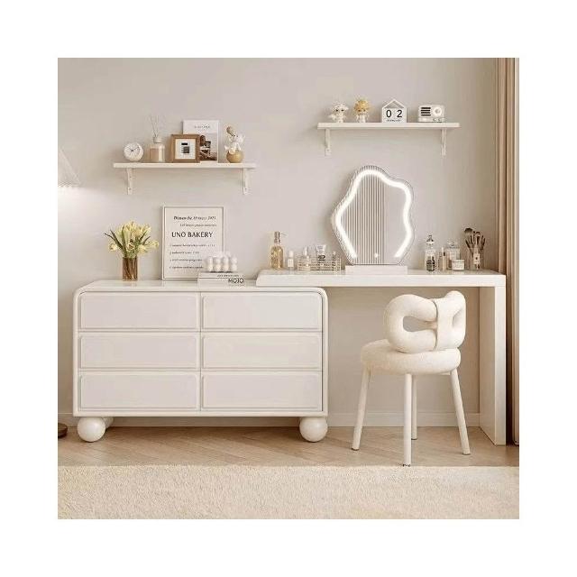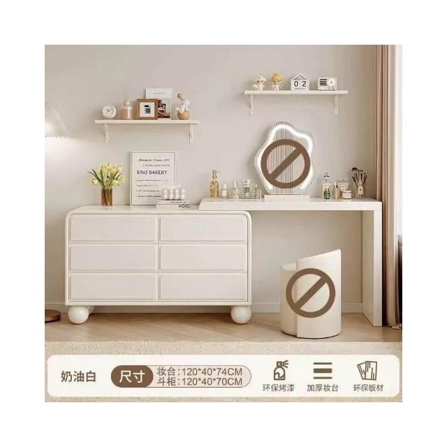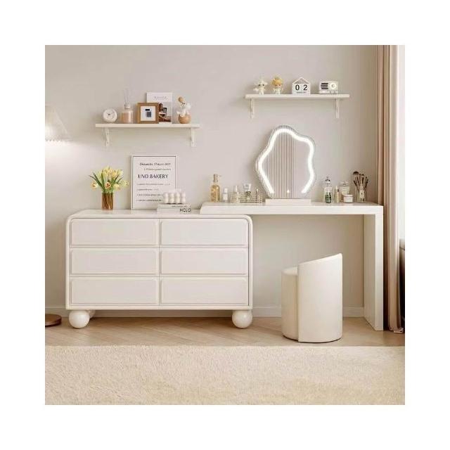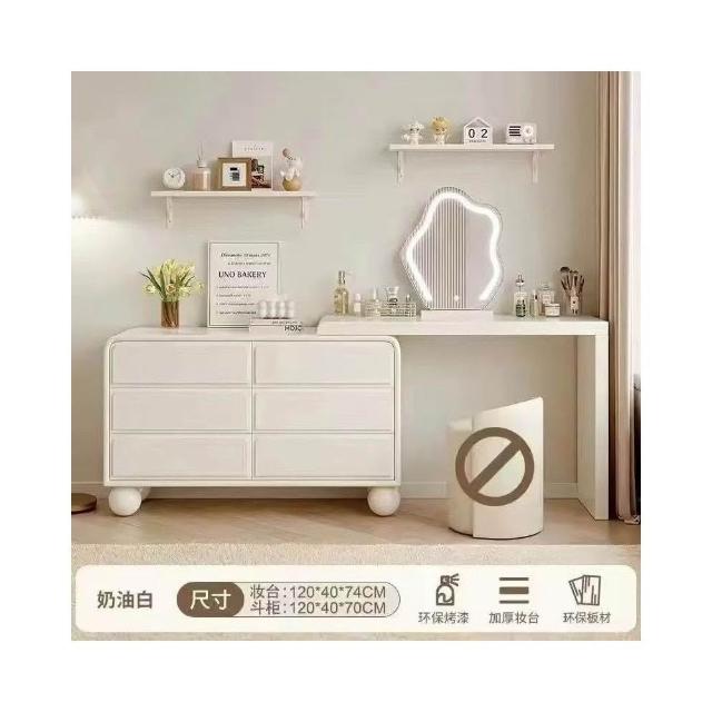 全实木梳妆台卧室简约现代多功能斗柜化妆台可旋转一体网红化妆桌