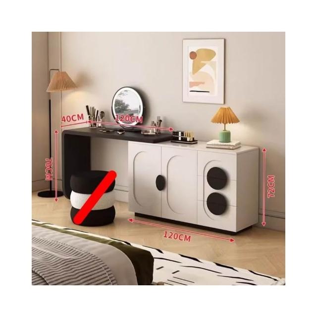 意式极简梳妆台收纳柜一体奶油风卧室现代简约设计师高级感化妆桌