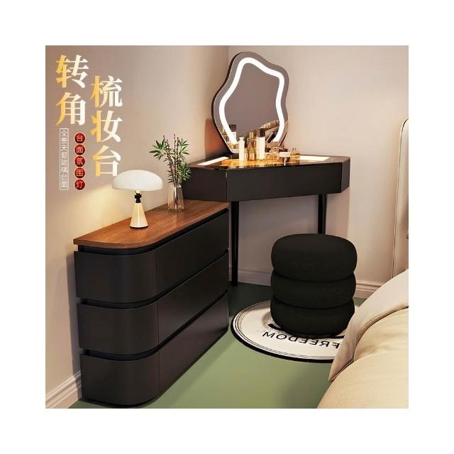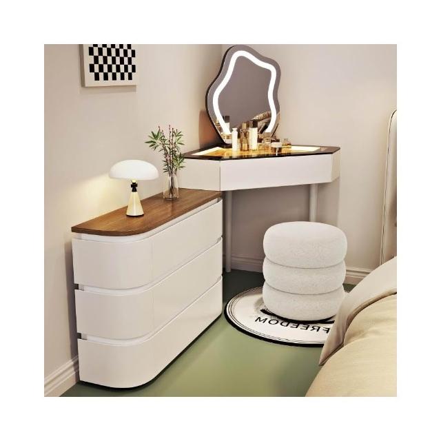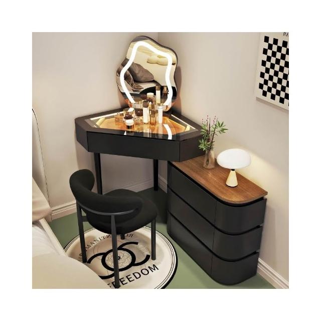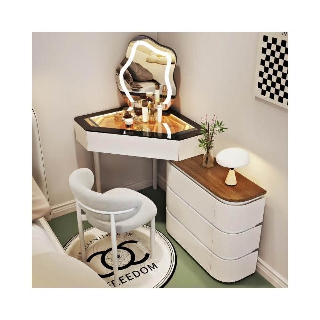 简约现代小户型转角梳妆台三角实木化妆台卧室转角边柜多功能收纳