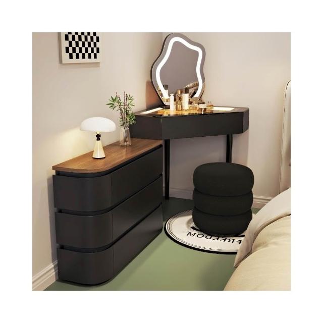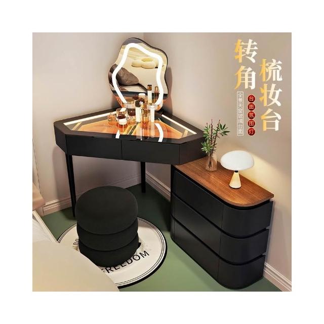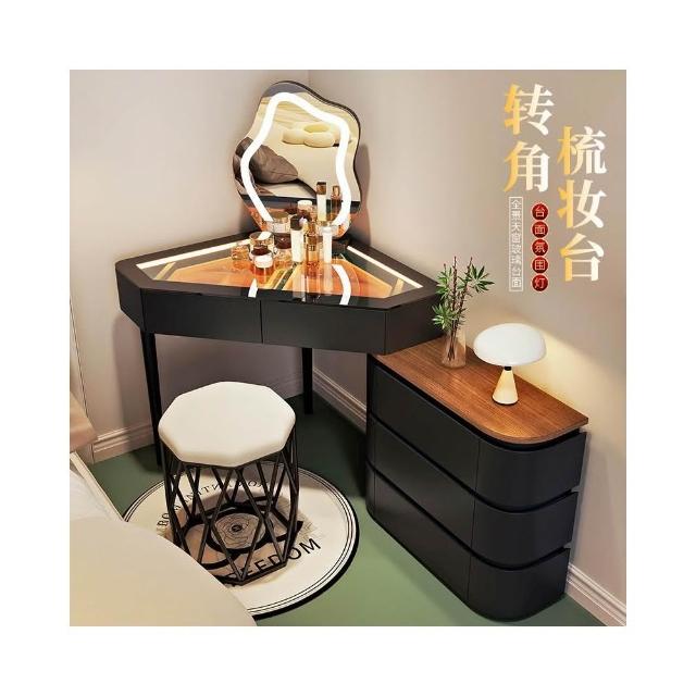 简约现代小户型转角梳妆台三角实木化妆台卧室转角边柜多功能收纳