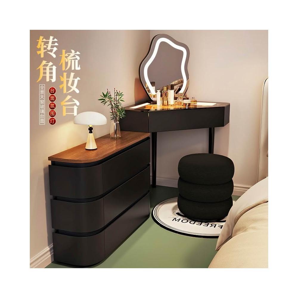 简约现代小户型转角梳妆台三角实木化妆台卧室转角边柜多功能收纳