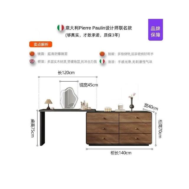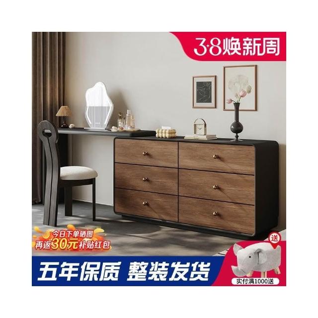 梳粧檯臥室復古風胡桃木收納化妝桌中古風實木梳妝臺鬥櫃一體