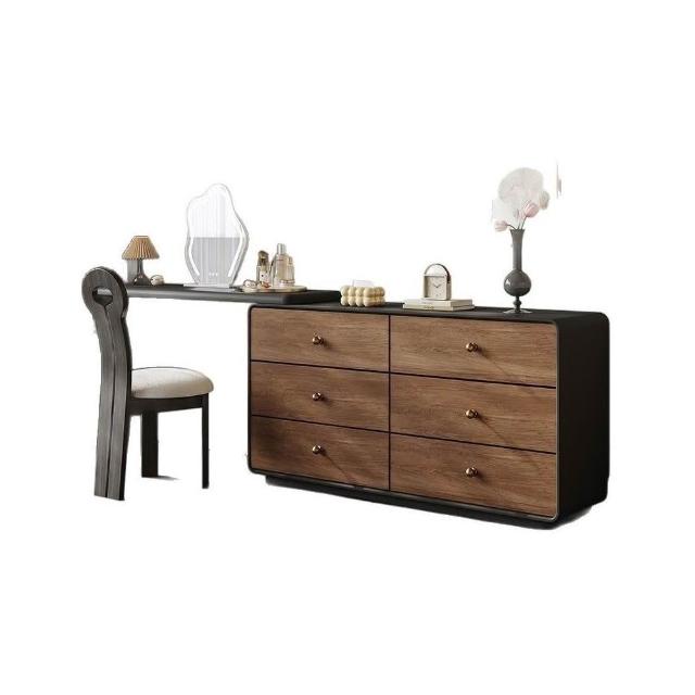 梳粧檯臥室復古風胡桃木收納化妝桌中古風實木梳妝臺鬥櫃一體
